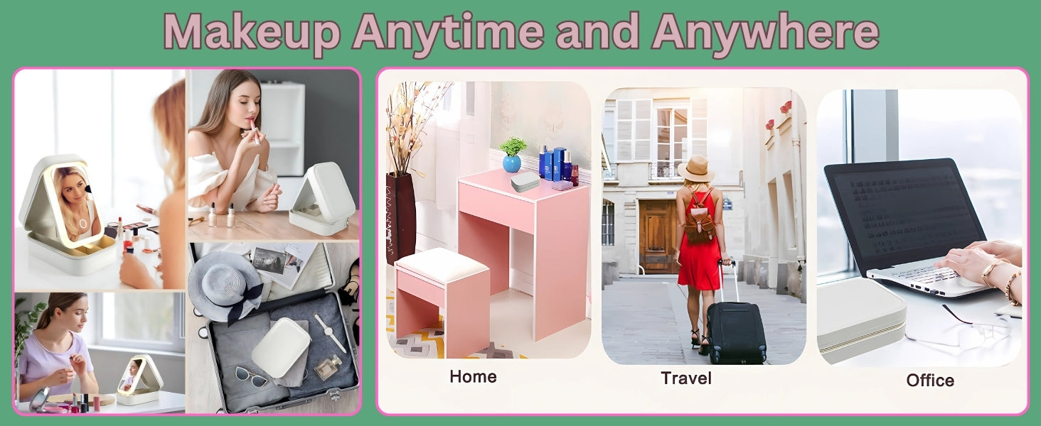 Small Travel LED Makeup Mirror Case with 3 Adjustable Color Light Settings, Dust-Proof Jewelry Box, Mini Cosmetic Train Case Ideal for Short Trips, Pink, Cosmetic Bag With Led Mirror(đ Valentine Offer: Get this stylish LED Makeup Mirror Box at đ„50% OFF with Free Shipping (3â4 days) and COD available)